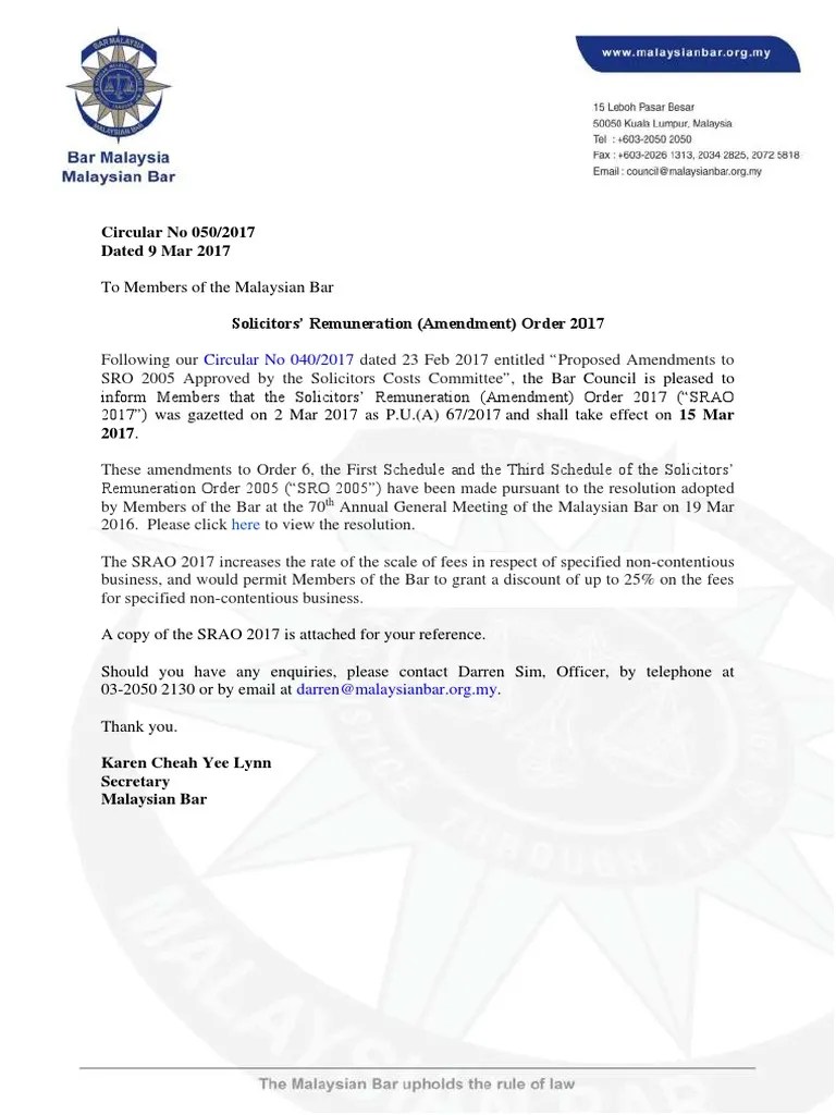 Solicitors Remuneration Order 2017 Pdf Malaysia - 2. Solicitors remuneration order 2017 pdf malaysia . The solicitors' remuneration (amendment) order 2017 ("srao") has been gazetted and will be in force from 15 march 2017. Jtpropertyinfo malaysia real estate property s blog consultancy transaction and procedures solicitors. The malaysian bar council in november 2012 approved the amendments to the solicitors' remuneration order 2005 ("sro 2005") that have been . The solicitors remuneration order 2005 is the guideline passed by the bar council to regulate the legal fees for conveyancing matters. Fill solicitors remuneration amendment order 2017 pdf: Notwithstanding the coming into operation of this .